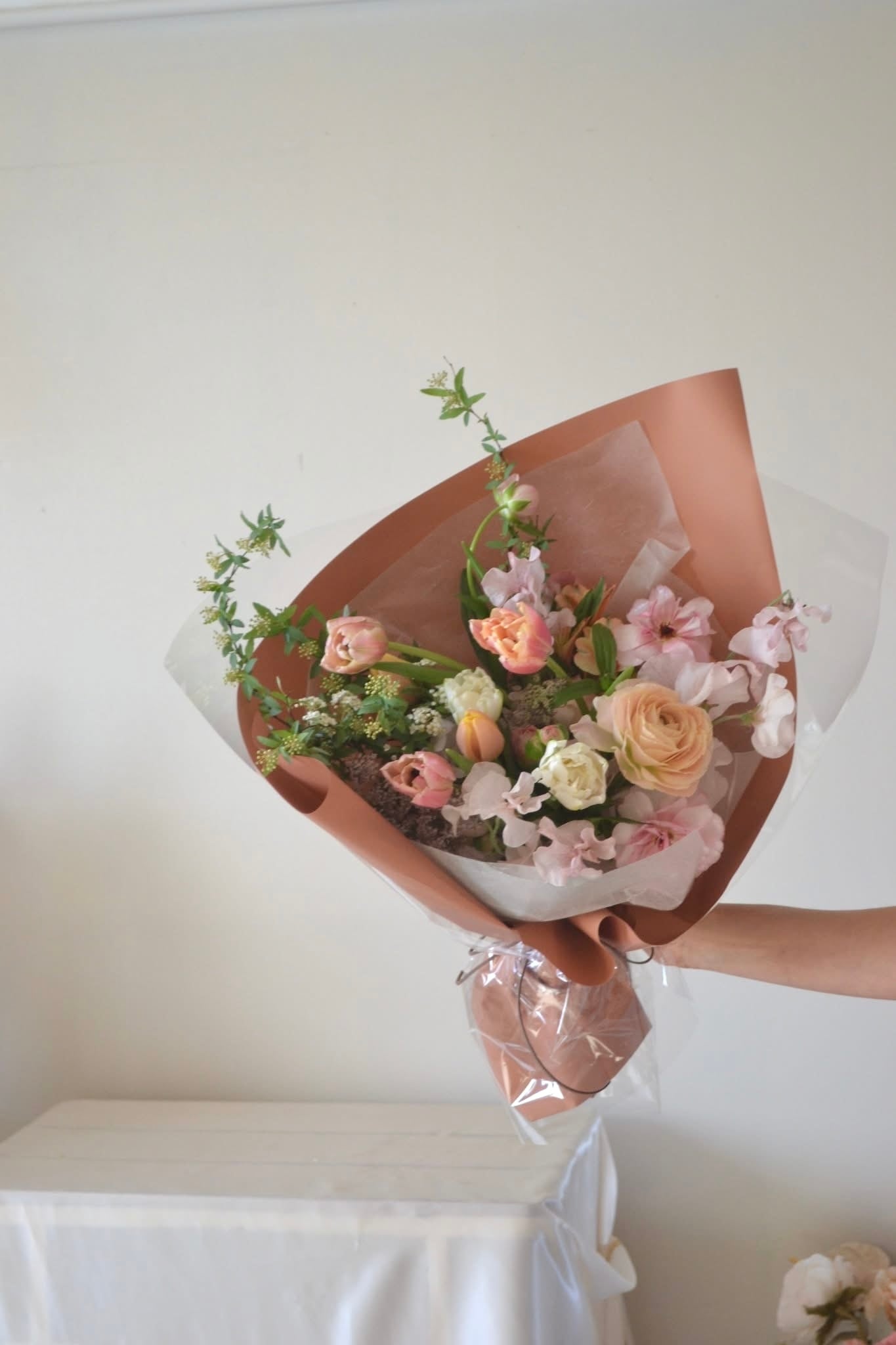 さえっこらしい可憐でナチュラルなお花を選んで心を込めて束ねます。