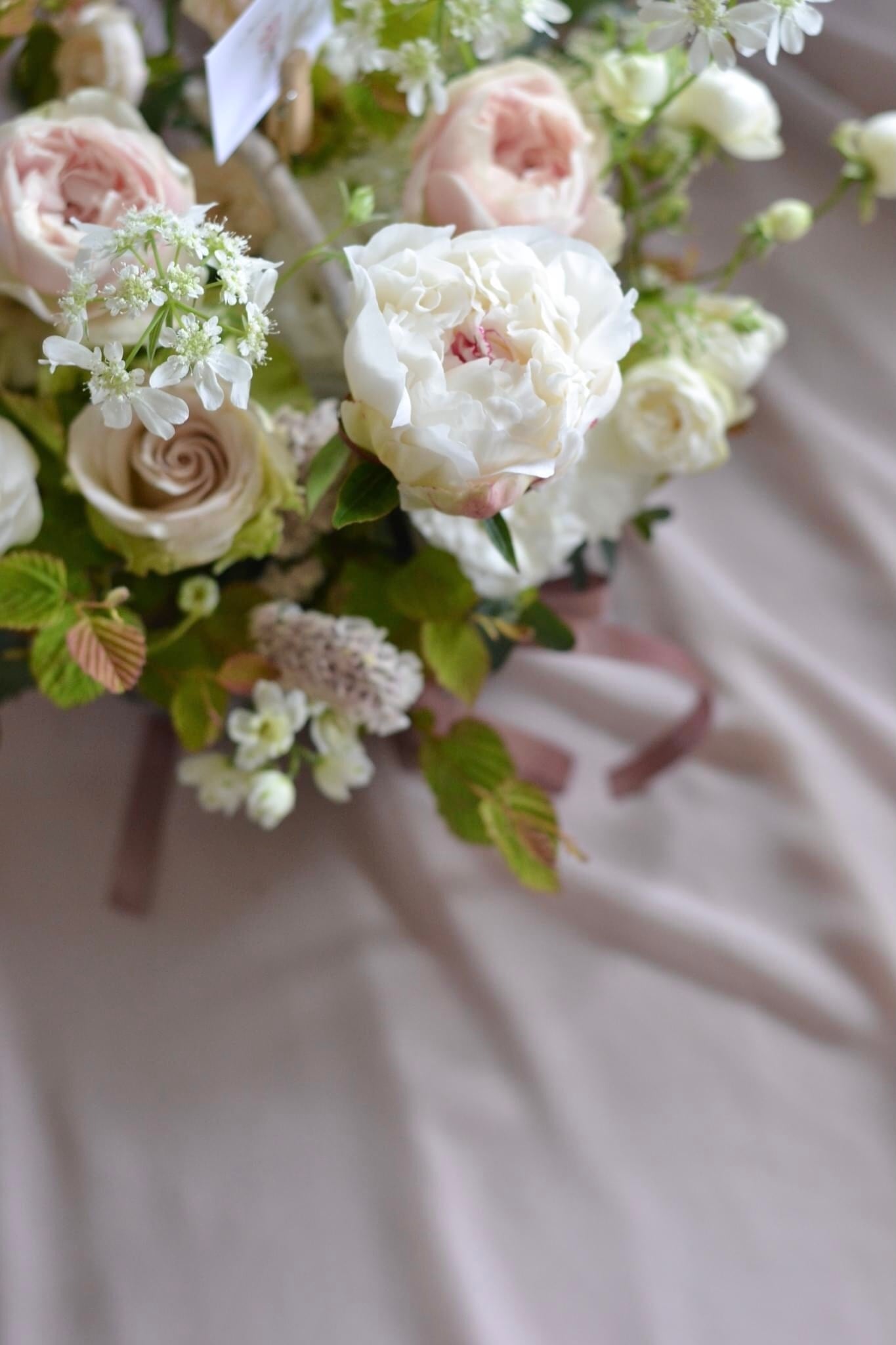 柔らかい色のバラや季節の花を入れてその時に綺麗な花をピックアップ。